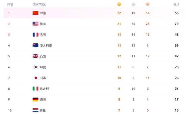 两人包揽了金银牌,帮助中国代表团的金牌数达到22枚,还有19枚银牌、14枚铜牌,再次反超美国代表团,夺回金牌榜第一位。