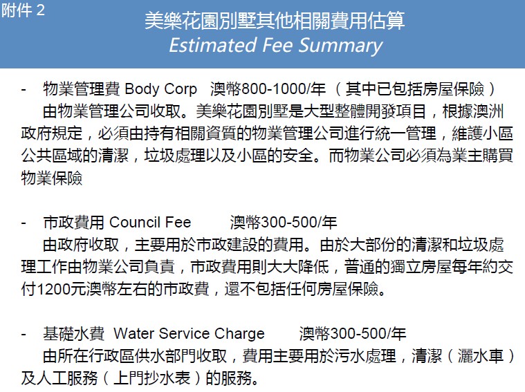 Melody Garden墨尔本美乐花园其他相关费用估算