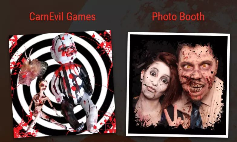 尝试万圣节嘉年华玩“愤怒的乌鸦”,“僵尸头环抛”等变态造型的游戏,还有众多主题道具供你合影的photo booth,是时候秀一下你的特效化妆术了!