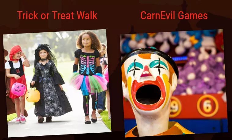 还有Trick or Treat Walk,万圣节装扮比赛或享受狂欢节游戏。都会在夜幕降临之前举行。