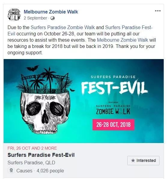 很遗憾备受喜爱的僵尸游行今年将不会出现在墨尔本了!