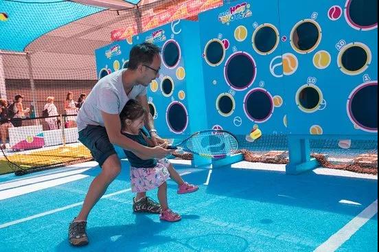 澳网同时也为儿童专门开辟了一片区域。澳网互动区域(Ballpark)是一个专向带小孩的家庭开设的迷你公园场地,场地内有着丰富的娱乐活动。比如广受欢迎的 NERF 和 LEGO 区,以及许多迪士尼元素的精彩注入。互动区域还有一条长达60米的索道,以及一个音乐舞台每日上演各种节目,全家都能充分在这里享受到乐趣。