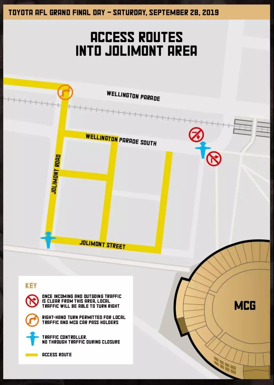 Jolimont St和Jolimont Tce将于早上6时至晚上11时期间封闭。
