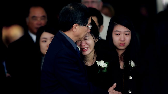 华裔少年关奕亨的家人在葬礼上 (图片来源:news.com.au)