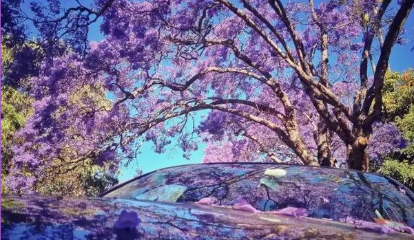 蓝花楹也被称作离别之花,因为它从盛开到凋零,刚好见证了一批批毕业生们的离开。