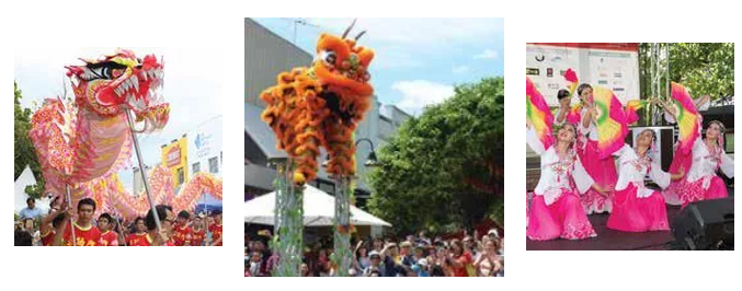 今年的新年庆典还有专业的舞台春节晚会,来自社区超过30个团体的巡游!