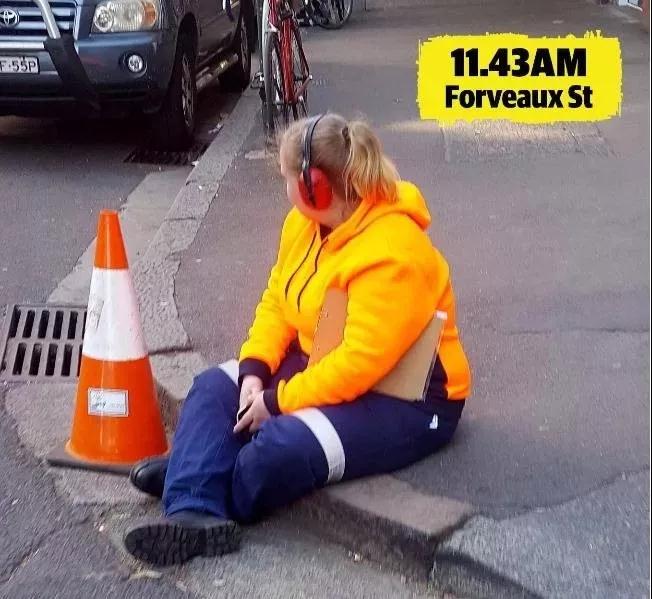 在悉尼CBD修轻轨期间,修路工人的日常摸鱼是这样。