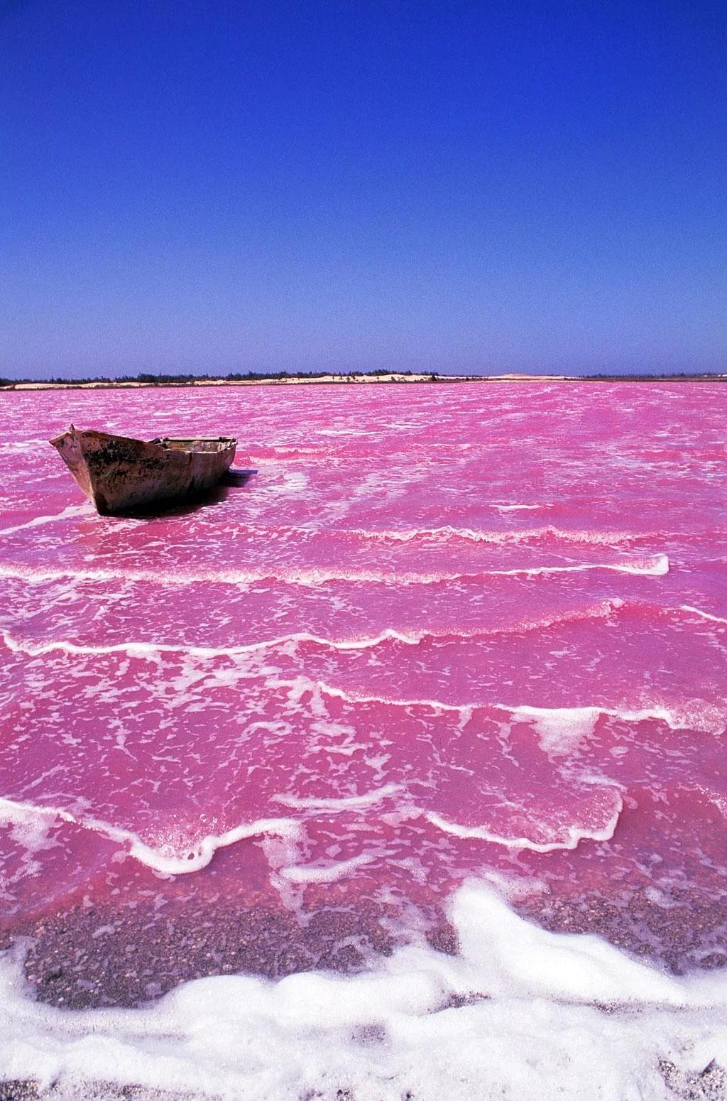 粉红湖位于西澳的Esperance,它的成因至今无人能解。据科学家推测,可能源自盐壳中的细菌所制造出的色素。