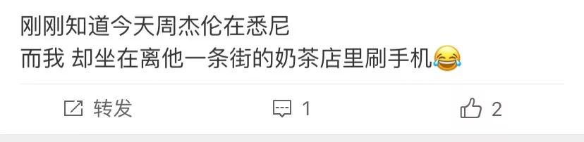 消息一出,悉尼的小伙伴都疯了:全网寻找周杰伦!甚至有人专门建了群,实时分享网上关于周杰伦位置的信息,只为卑微地亲眼看天王一眼。