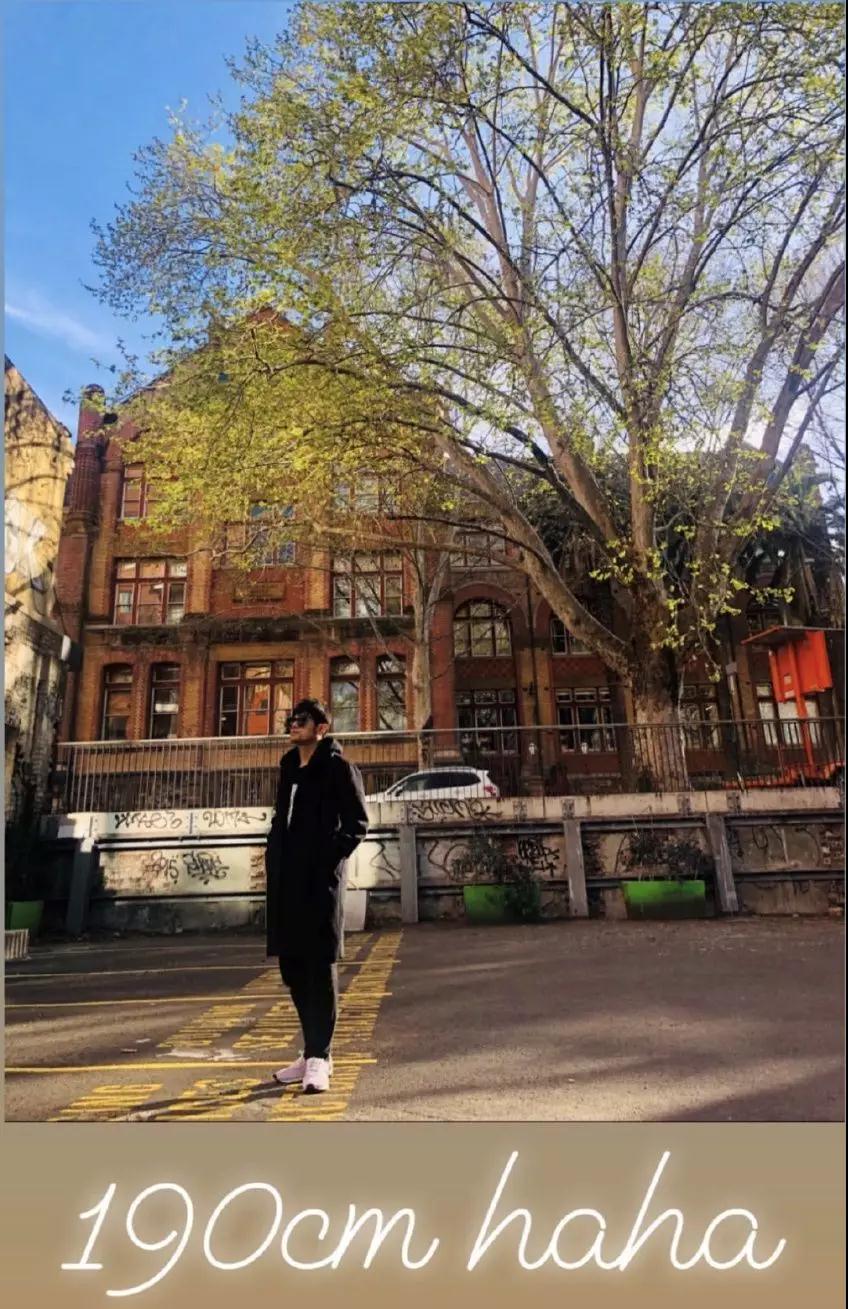 25分钟后,又更新一条,调侃自己拍照身高一米九: