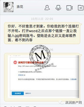 最近,有一大批网络犯罪团伙,他们的目标盯上了广大的华人打工者,通过发布假的招聘信息,并留下真实电话号码,引诱大家过去联系,然后他们会要求你通过qq登陆他们提供的一个网站,再一步一步的要你的各种资料,包括让你给他们一段视频。他们提供的网站就是钓鱼网站,会直接盗窃你的qq信息,如果你的qq好友里有你的亲人或朋友,他们会用之前你给的视频,伪造出你被绑架的样子,然后和你国内的亲人勒索要钱。