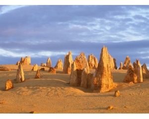 尖峰石阵(南邦国家公园)简介 尖峰石阵位于珀斯北方260公里处,为南邦国家公园(NambungNationalPark)的一部分。这里有一片横跨沙漠的奇异活化石原始森林,再加上数以千计、甚至高达4公尺...