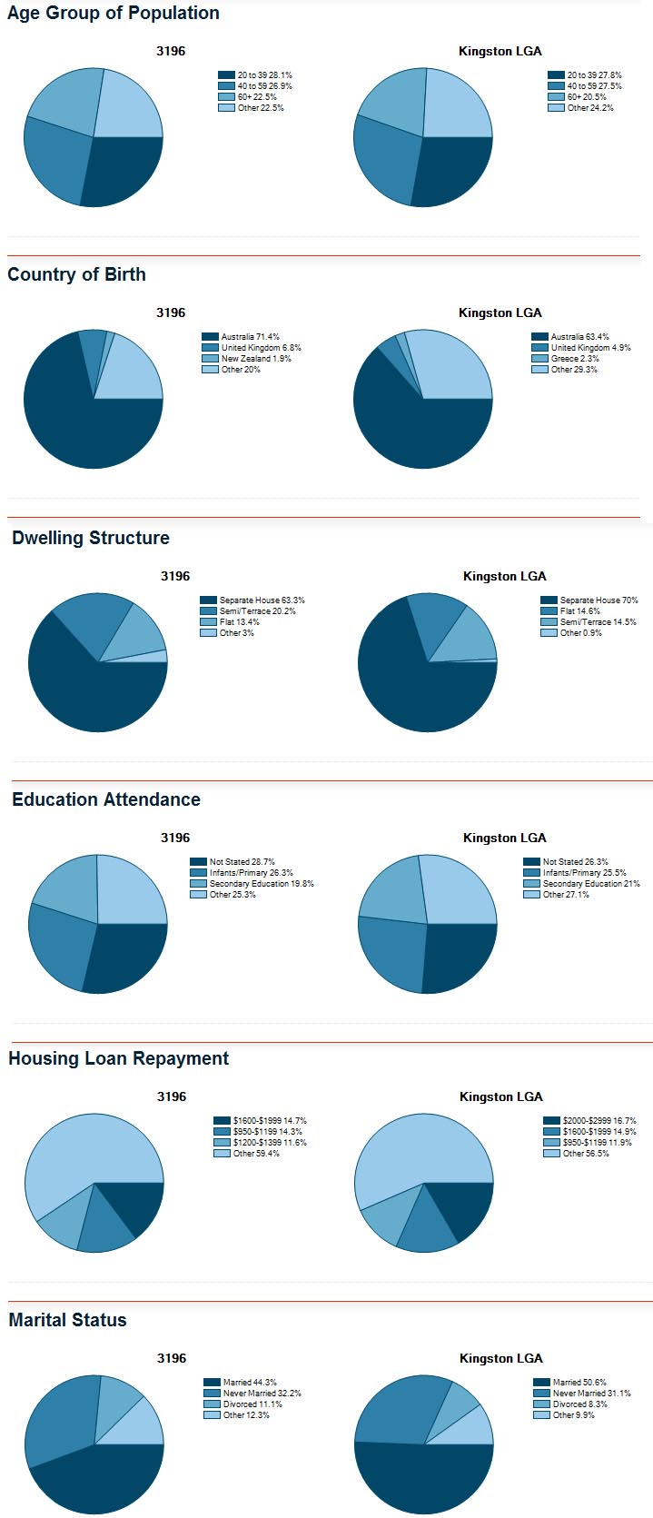 注意:该人口统计表依据最常见到最不常见进行排名,并将该目标地区与悉尼市得数据对比列出,以方便读者进行比较。本数据来源于澳洲统计局和澳洲房产研究监督所,版权归属澳大利亚联邦政府。英文版来源于www.domain.com.au