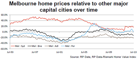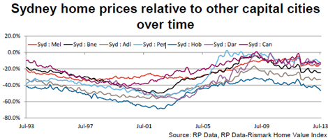基于这些数据分析,众城市与悉尼的房价差距巨大。墨尔本和珀斯相对相似,其次是布里斯班,其次是阿德莱德。