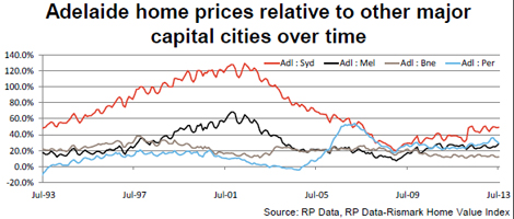 阿德莱德,悉尼,墨尔本和布里斯班房价的差距显著。珀斯的中价比阿德莱德高出29.5%,最近几个月来,差距逐渐减小。