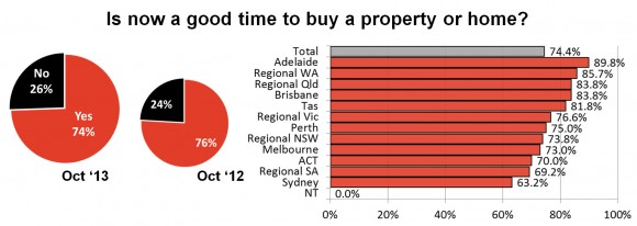 RP Data(澳洲权威房市调查机构)调查显示大多数受访人(74%)认为现在是购买房产的好时机。