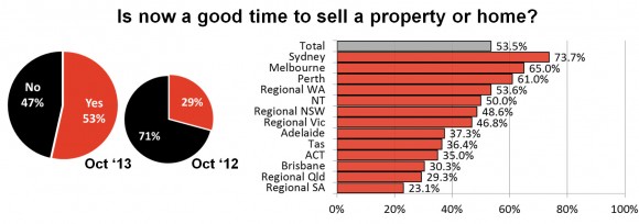 悉尼房产市场最为旺盛,同意此刻为卖房时机的人数也是最大的。大约有74%的悉尼受访者认为现在是卖房的好时机。根据RP Data最新的每周数据线数,悉尼房产在市场上平均出售天数为27天。
