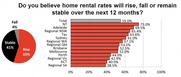 大多数人(55%)认为接下来一年租金会上涨,只有4%认为会下跌。