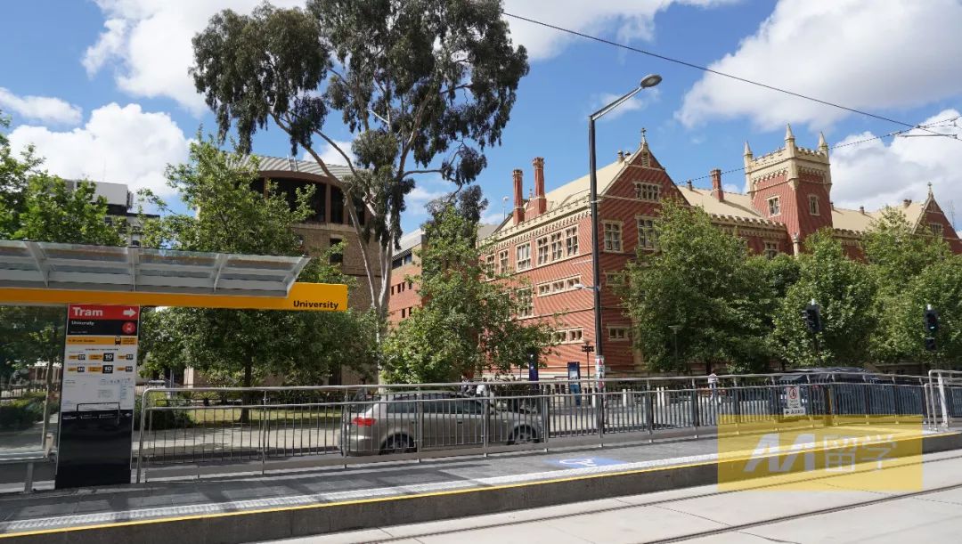 ▲靠近阿德莱德大学和南澳大学的站点“University”,后面红色大楼就是南澳大学的教学楼,左边就是阿德莱德大学!