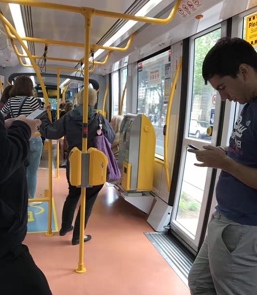 ▲电车内部空间非常宽裕,A君曾在工作日的下午5点、晚上8点乘坐Tram,一点也不会拥挤。每趟列车到站会短暂停留,只需按车门上的按钮即自动开门,非常方便!