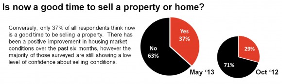 只有37%的受访者认为现在是卖房的好时机,在过去的6个月间房产市场渐渐好转,但是大多数人还是对卖房信心不大