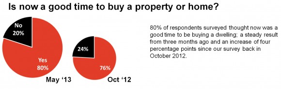 80%的受访者认为现在是买房和入住的好时机,连续3个月的平稳上升,相比去年10月份已上升了4个百分点