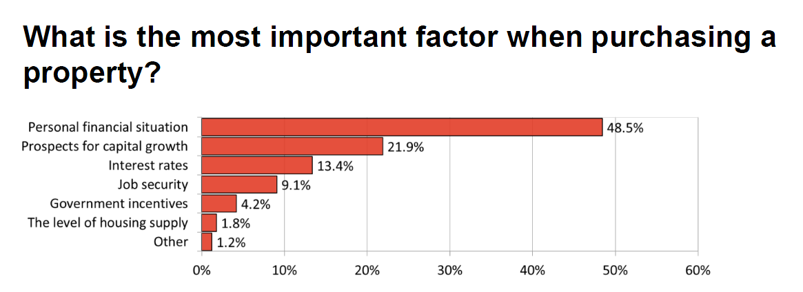 (由上往下):个人财务状况;资产增值前景;利率;就业稳定性;政府激励政策;房源供应;其它
