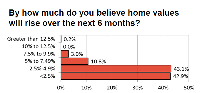 你认为在接下来的6个月中房价会升值多少?