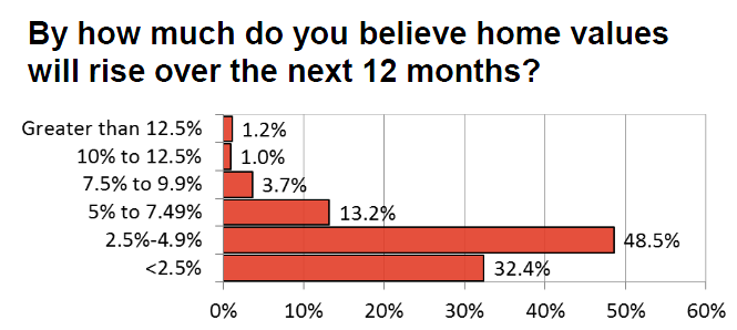 你认为在接下来的12个月中房价会升值多少?