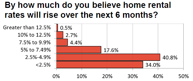 你认为在接下来的6个月中房租会怎么走?升值的话会升值多少?