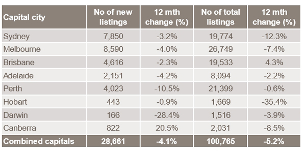 从上图可以看出:悉尼和墨尔本价格增长全国最高,但新房屋挂牌销售数分别下跌3.2%和4%。
