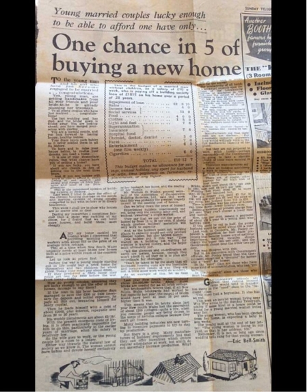 【今日澳洲5月27日讯】悉尼的高房价早已不是什么新鲜事,悉尼的年轻人买不起房更是再正常不过。近日,一份1950年的报纸剪报让我们哭笑不得,原来早在60年前,悉尼的年轻人已经买不起房了。