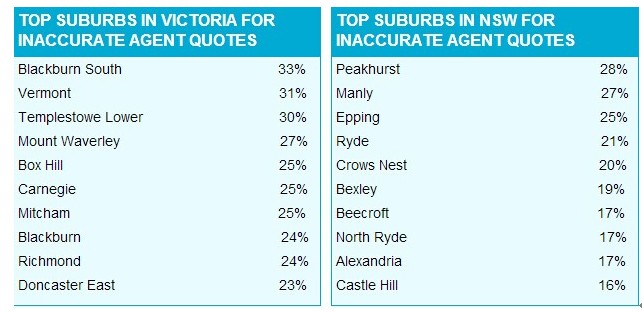 该程序执行的一项研究表明,房产的实际售价与中介以前的报价有差别。其中墨尔本的外东区是虚报行为最严重的地区。