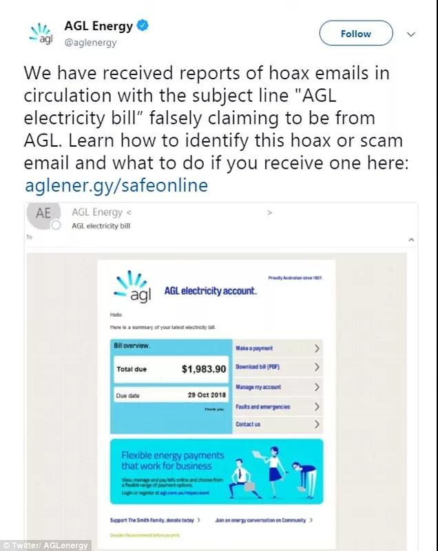 近日,AGL能源公司在社交网络上向其用户发出警告!