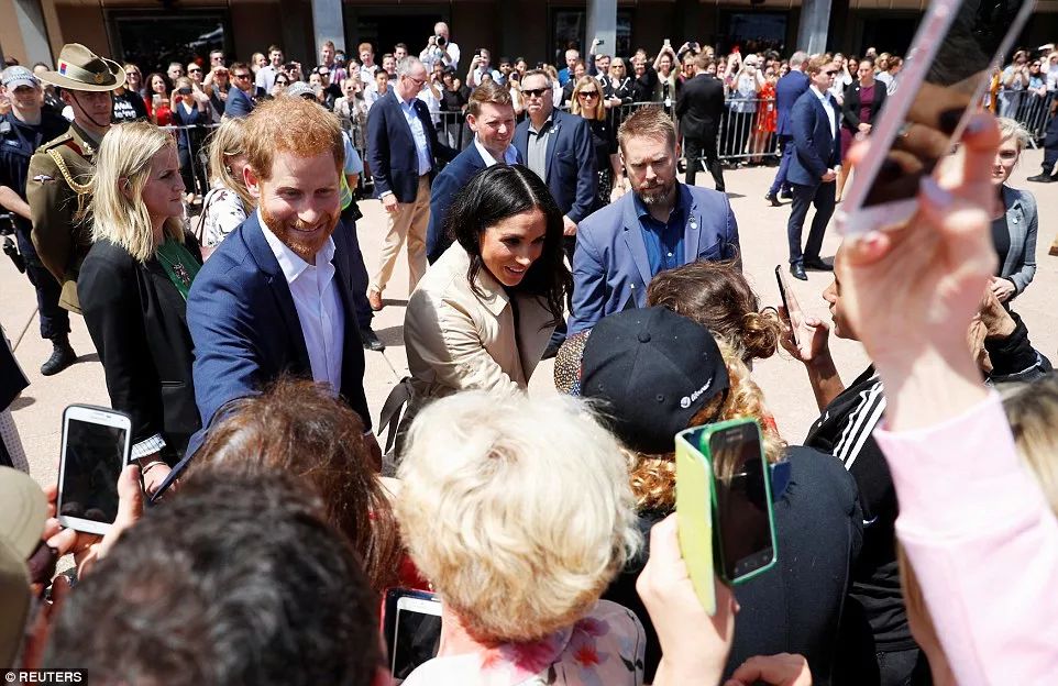 哈里王子携梅根在悉尼歌剧院前漫步时,是澳洲民众第一次有机会与这对新婚夫妇互动;也是辛肯顿宫宣布梅根有喜的消息后,公众首度向他们送上祝福。