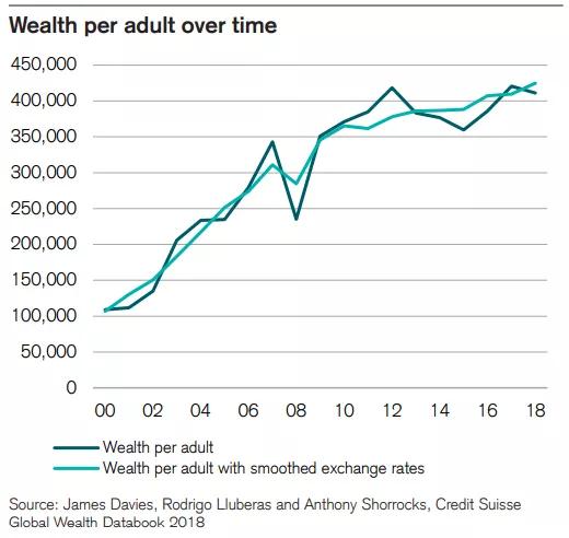 ▲ 澳大利亚人2000年-2018年人均财富趋势;