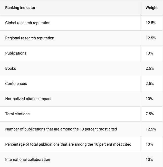 此榜单,根据大学的学术研究表现,全球及本地的声誉指数等来进行排名。大量学生使用这样的排名来用于择校。