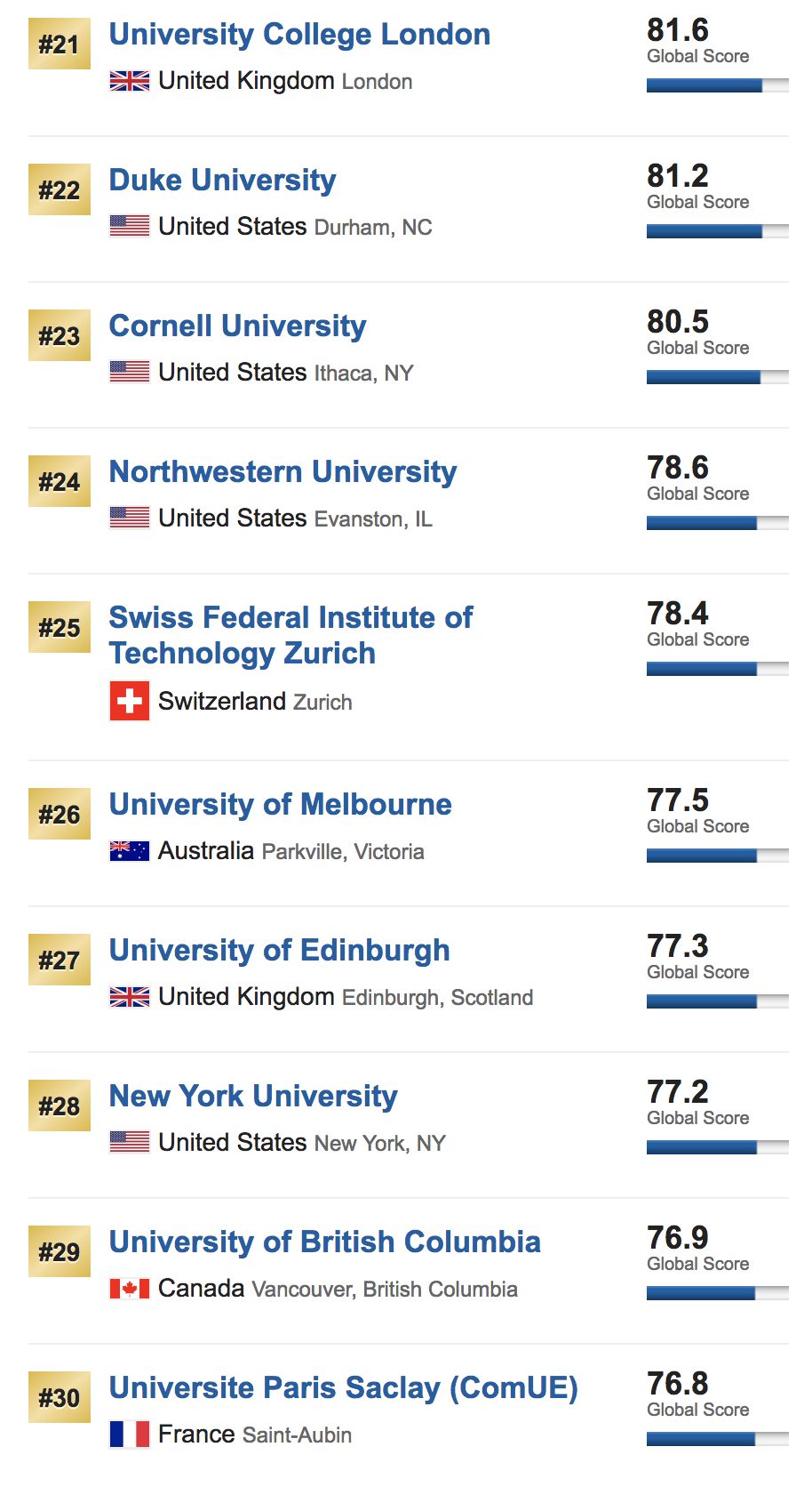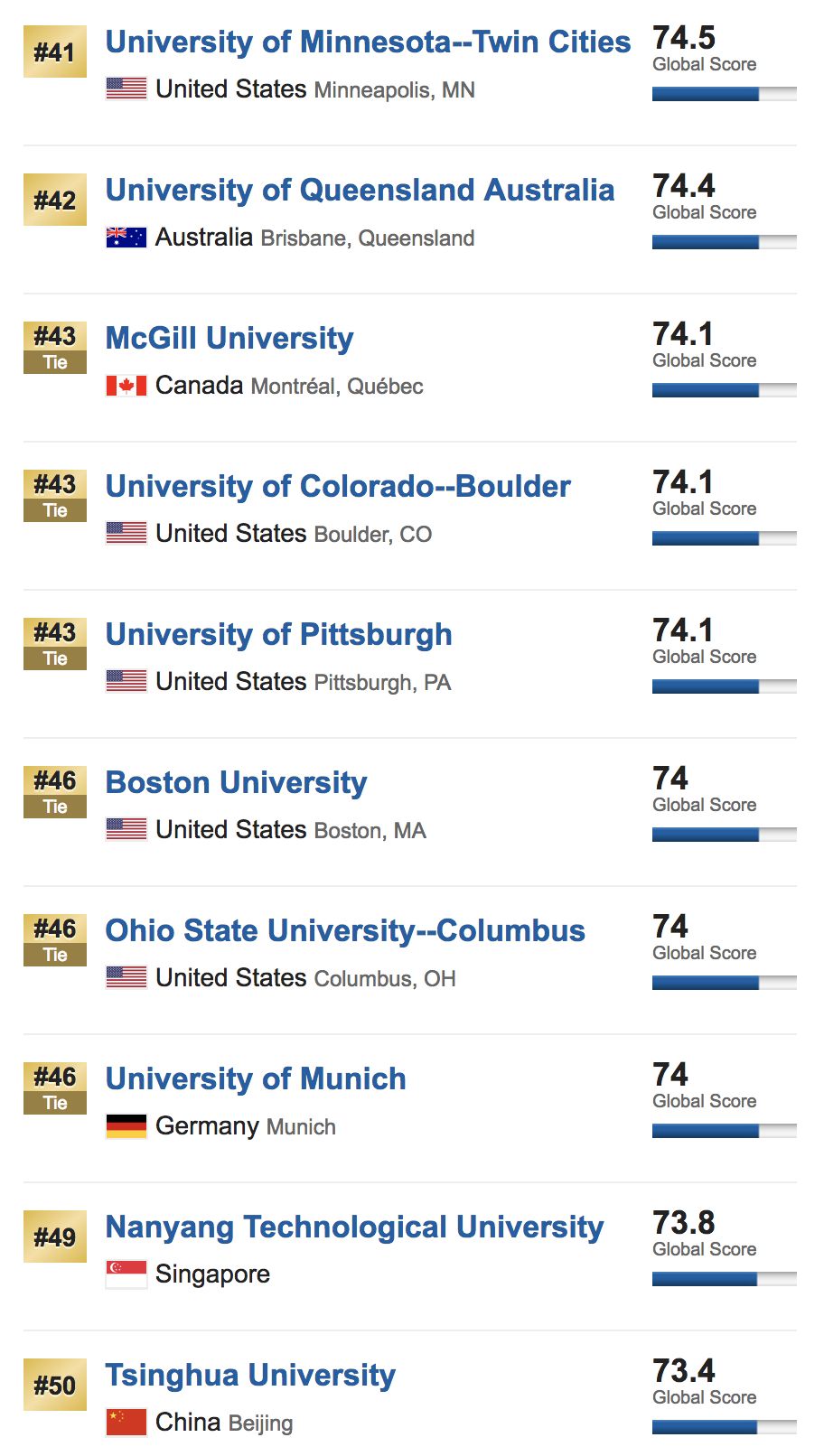 (Best Global Universities Rankings)