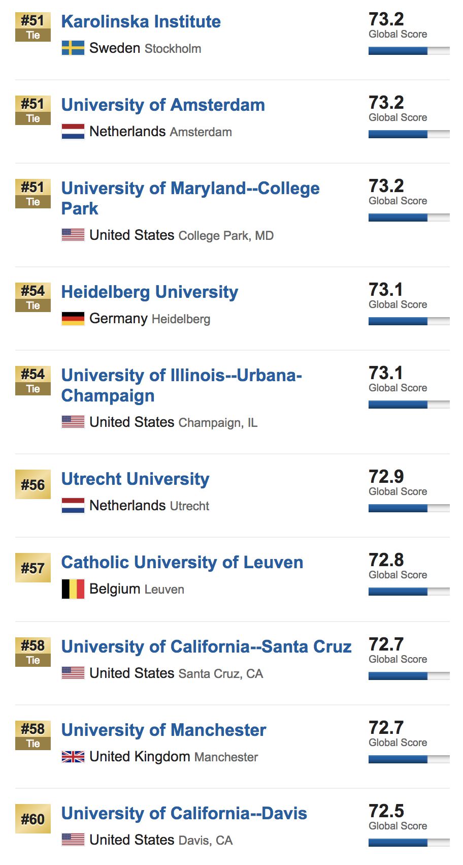 It measure their academic research performance and their global and regional reputations. Students can use these rankings to explore the higher education options that exist beyond their own countries' borders and to compare key aspects of schools' research missions. These are the world's top 1,000 universities.