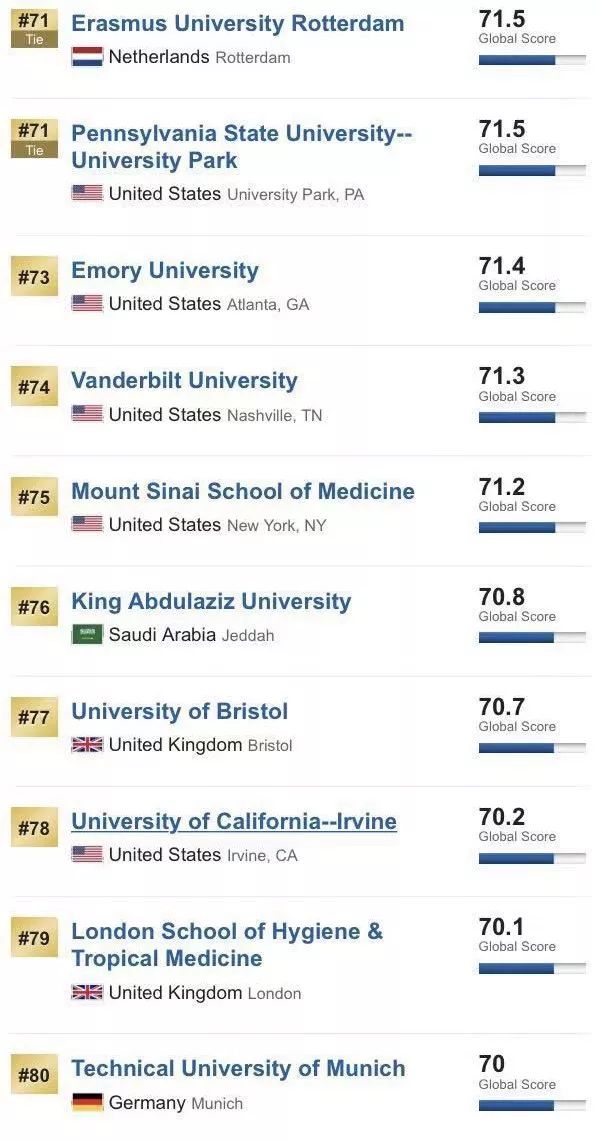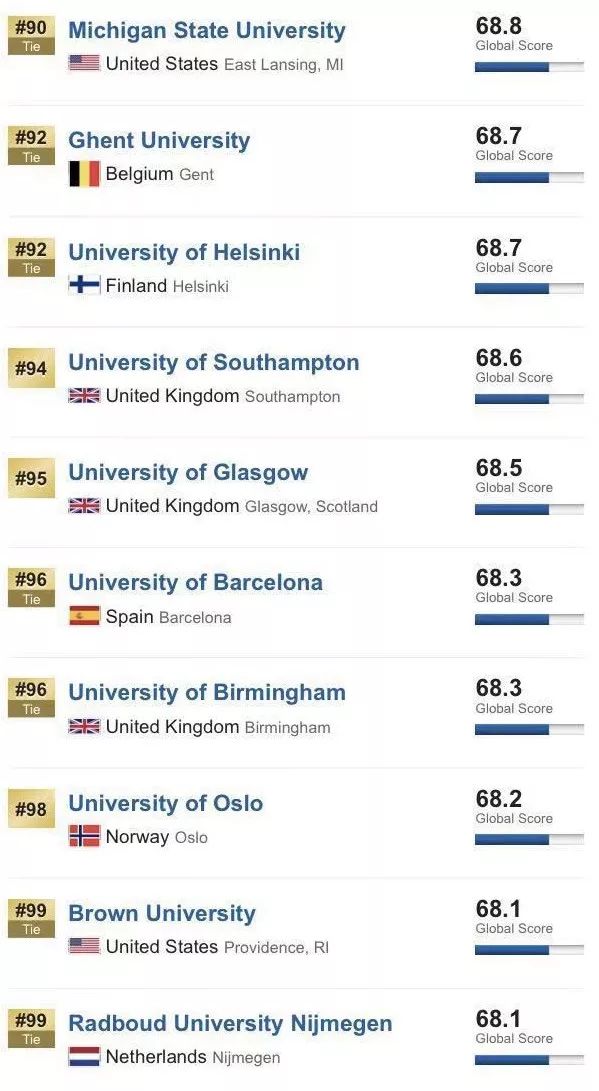 以下为排名前100的院校: