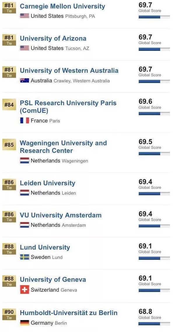 而ANU排名提升了3位,位列世界66.