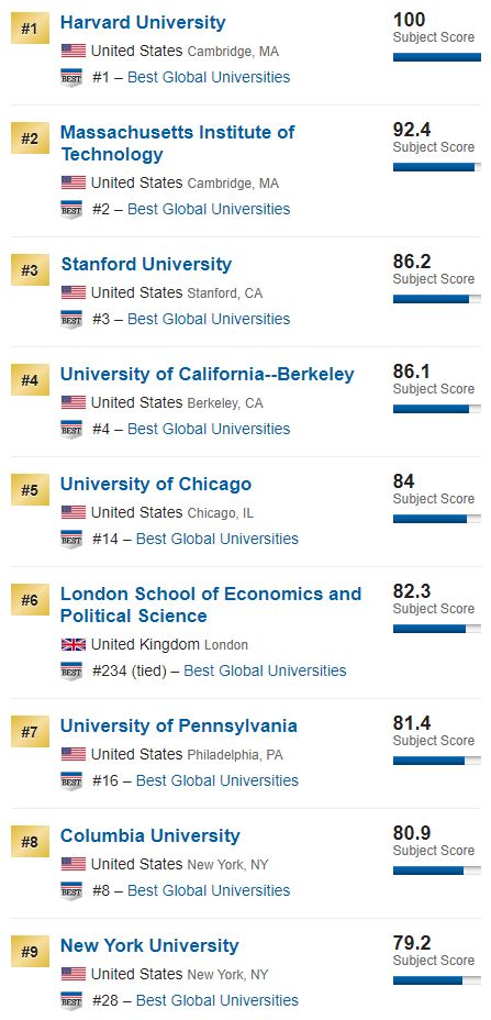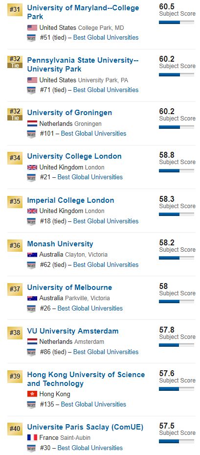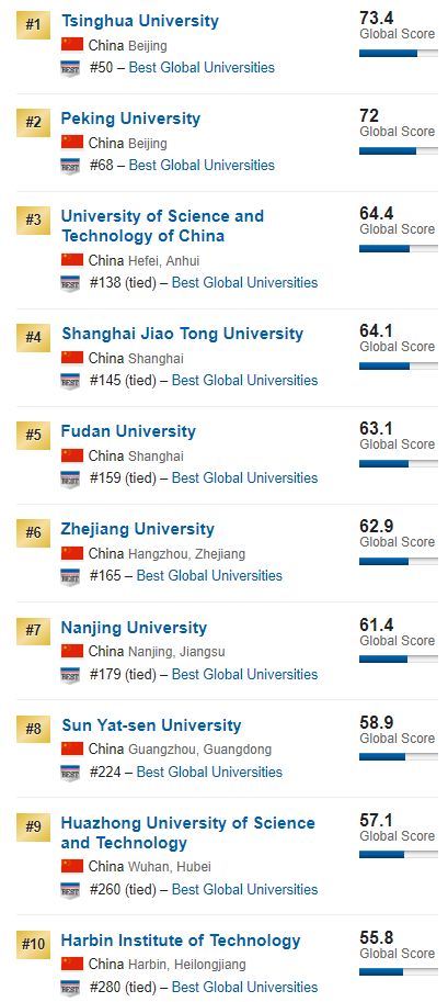 美国新闻与世界报道U.S News & World Report公布了2019年对于全球大学的研究结果: