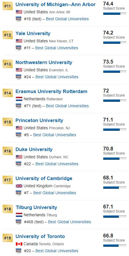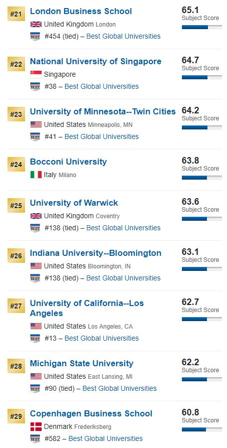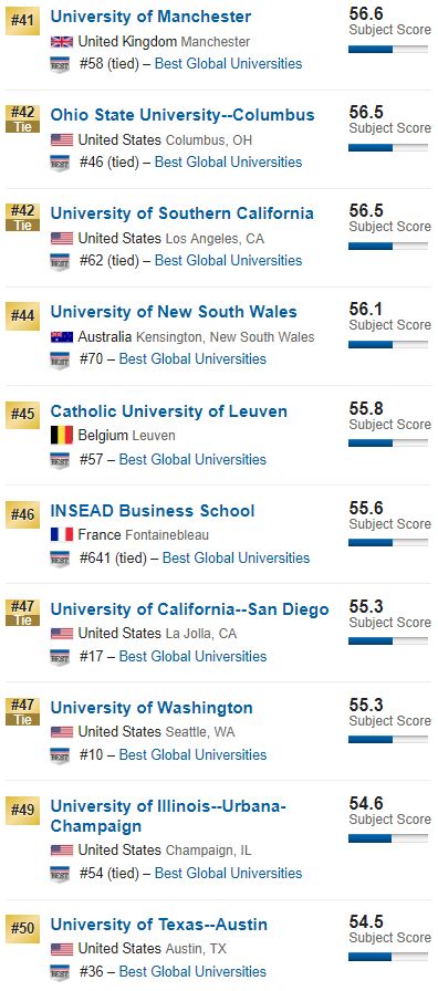 2019年世界大学商院排名Top 50