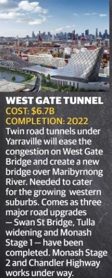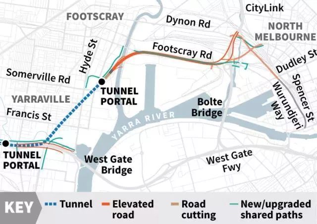 西门隧道West Gate Tunnel,67亿澳元,是预计最早投入使用,预计在2022年就可以完成了。这是两条并列建设于yarraville下隧道,联通西门高速公路和码头区的CityLink收费公路,其建成后可以满足西区的发展需要。