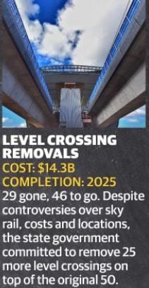 平交道口移除(level crossing removal)143亿澳元完工时间:2025年。在这个规划中维州政府决定移除75个最危险的平交道口。