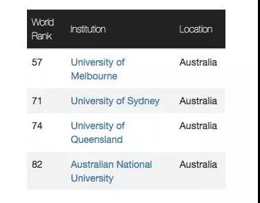 澳洲一共有4所大学进入百强,分别是墨尔本大学,悉尼大学,昆士兰大学和澳洲国立大学。