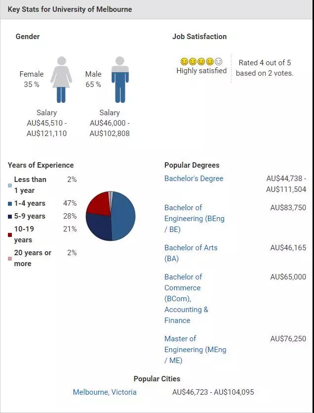 墨尔本大学的毕业生也是最受澳洲雇主欢迎的,工作满意度和认可度都很高。