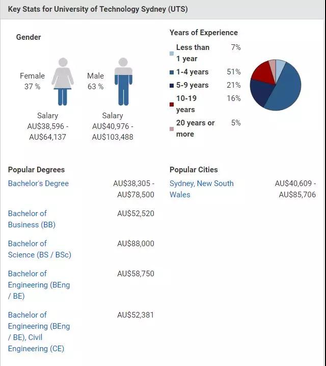 悉尼科技大学虽然不是澳洲八大,但也是悉尼比较知名的一所大学,本科毕业生平均薪资水平在$38596-$103,488之间,毕业之后,大部分学生都选择在悉尼工作。