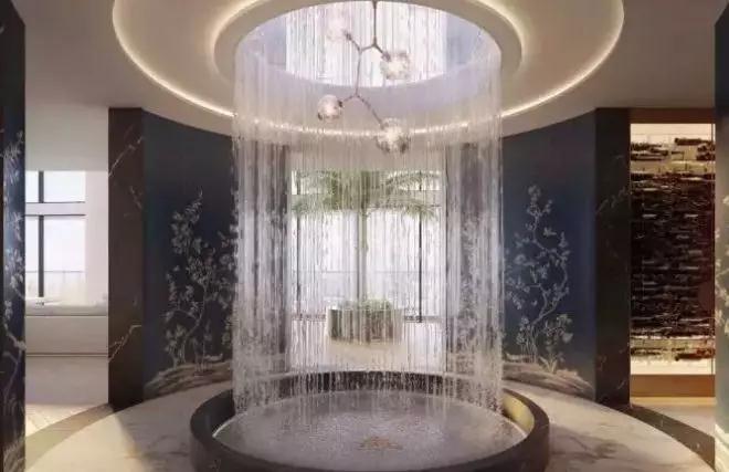 这套空中豪宅共有两层,室内面积总共650平方米,室外空间还有150平方米。共拥有七间卧室,四个客厅。下沉式室内游池、大理石墙面环绕的两层高瀑布水景、浮动壁炉等等。
