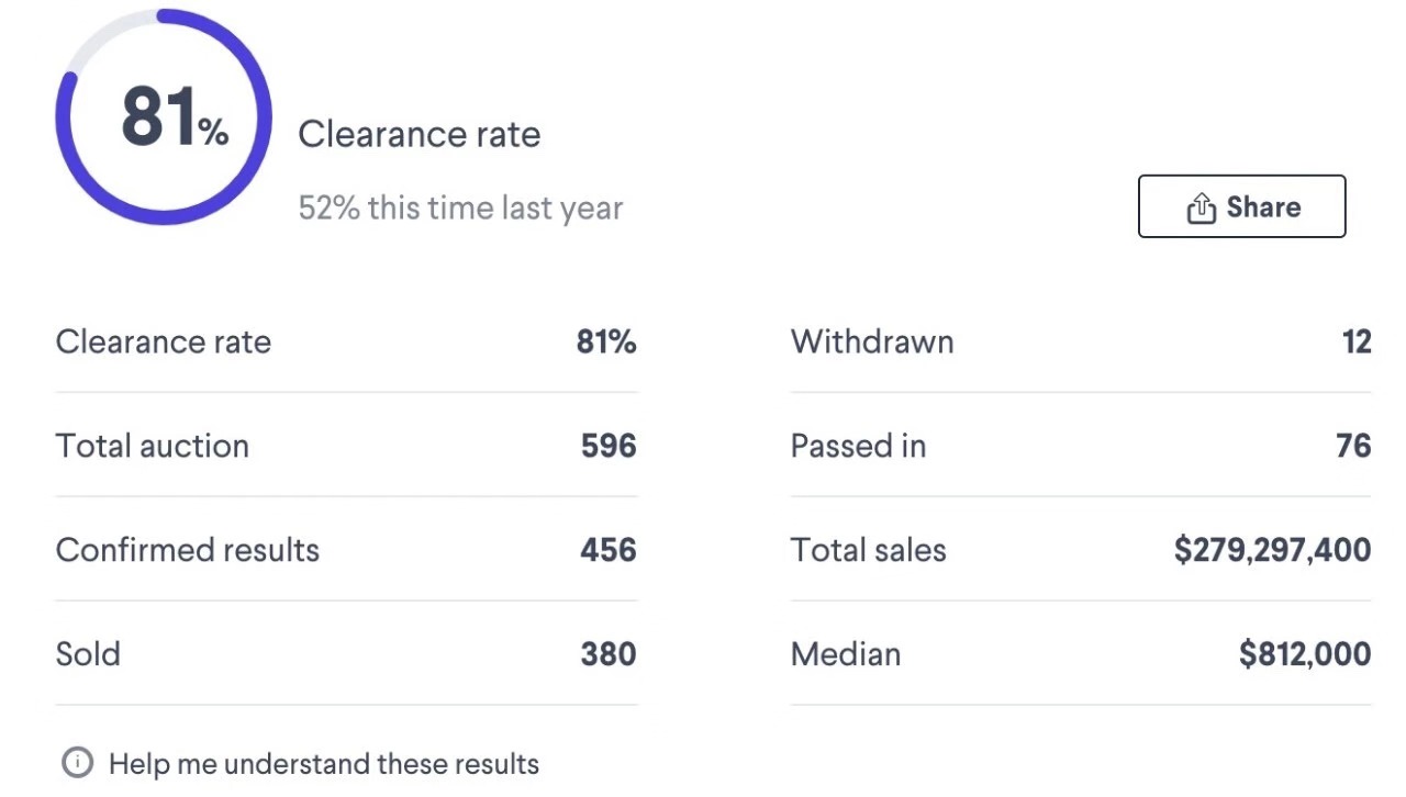 墨尔本共有596套房屋参与拍卖,清空率高达81%。